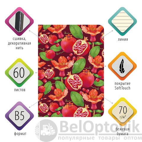 Тетрадь 60 л. в линию обложка SoftTouch, бежевая бумага 70 г/м2, сшивка, В5 (179х250 мм), ГРАНАТ, BRAUBERG, 403824