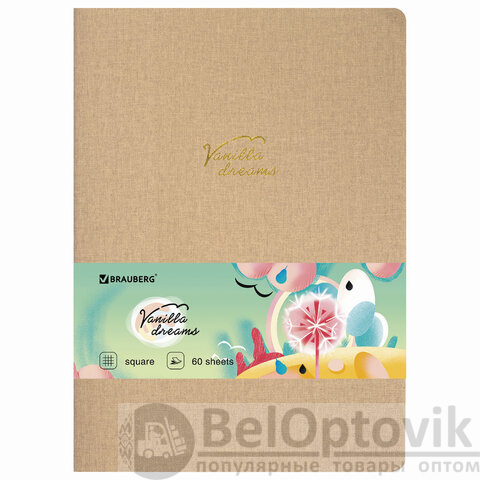 Тетрадь 60 л. в клетку обложка кожзам под лён, сшивка, B5 (179х250мм), БЕЖЕВЫЙ, BRAUBERG PASTEL, 403874
