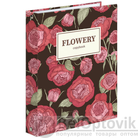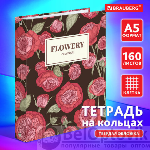 Тетрадь на кольцах А5 (175х215 мм), 160 листов, твердый картон, клетка, BRAUBERG, Flowers, 404090
