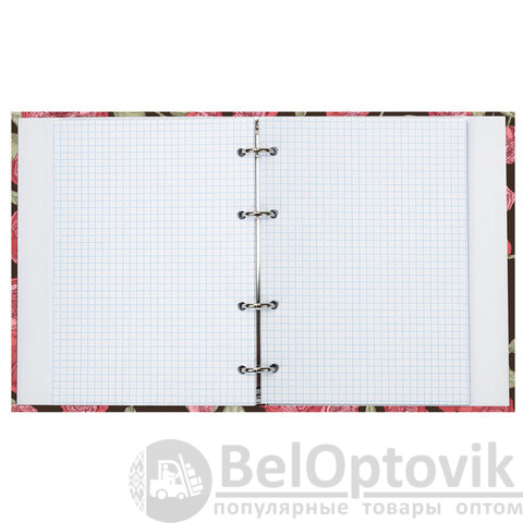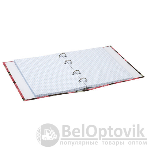 Блок состоит из 160 листов офсетной бумаги белого цвета плотностью 60 г/м2. Линовка – клетка. Жесткая книжная обложка выполнена из переплетного картона и покрыта глянцевой пленкой. Формат А5 является стандартным и обеспечивает комфортное ношение в рюкзаке/ранце или папке. Оборудована кольцевым механизмом с 4-мя кольцами для подшивки сменных блоков, что позволит носить на учебу/работу всего одну тетрадь с возможностью добавлять и менять листы. Диаметр колец составляет 20 мм.