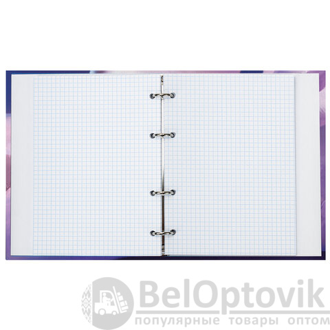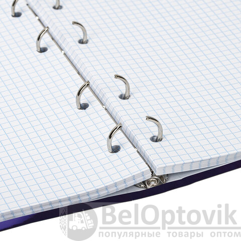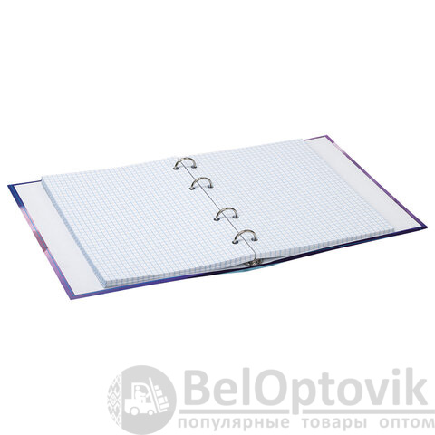 Блок состоит из 160 листов офсетной бумаги белого цвета плотностью 60 г/м2. Линовка – клетка. Жесткая книжная обложка выполнена из переплетного картона и покрыта глянцевой пленкой. Формат А5 является стандартным и обеспечивает комфортное ношение в рюкзаке/ранце или папке. Оборудована кольцевым механизмом с 4-мя кольцами для подшивки сменных блоков, что позволит носить на учебу/работу всего одну тетрадь с возможностью добавлять и менять листы. Диаметр колец составляет 20 мм.