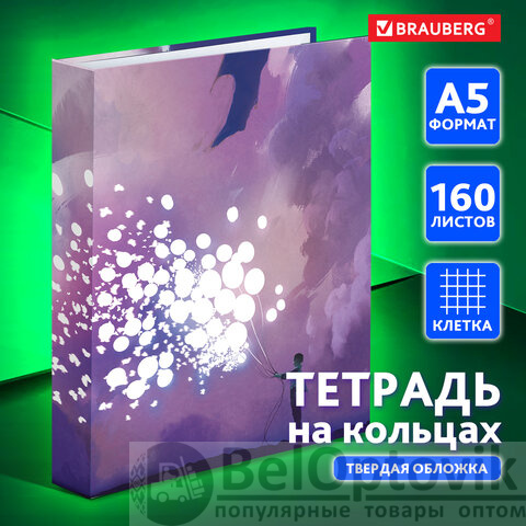 Тетрадь на кольцах А5 (175х215 мм), 160 листов, твердый картон, клетка, BRAUBERG, "Anime Dreams", 404092