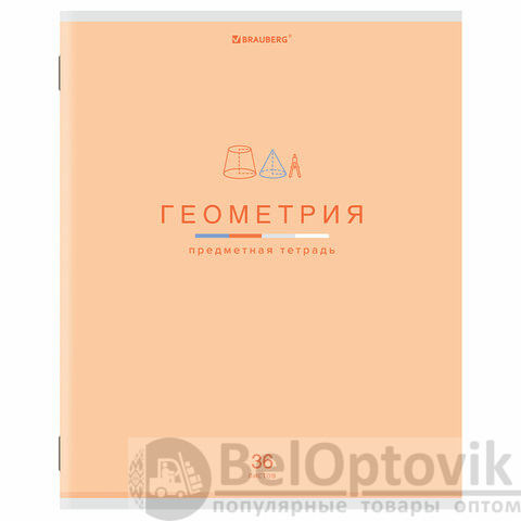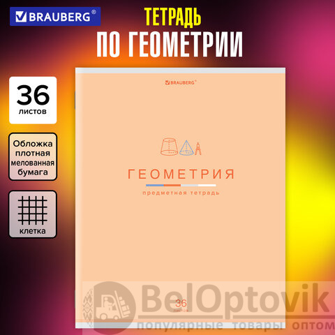 Тетрадь предметная "МИР ЗНАНИЙ" 36 л., обложка мелованная бумага, ГЕОМЕТРИЯ, клетка, BRAUBERG, 404598