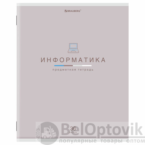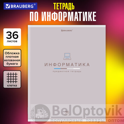 Тетрадь предметная "МИР ЗНАНИЙ", 36 л., обложка мелованная бумага, ИНФОРМАТИКА, клетка, BRAUBERG, 404599