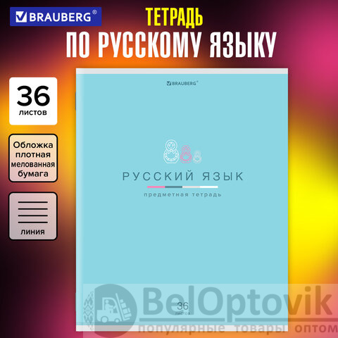 Тетрадь предметная "МИР ЗНАНИЙ" 36 л., обложка мелованная бумага, РУССКИЙ ЯЗЫК, линия, BRAUBERG, 404602