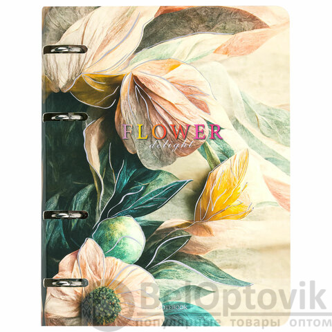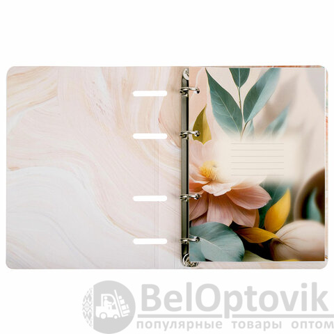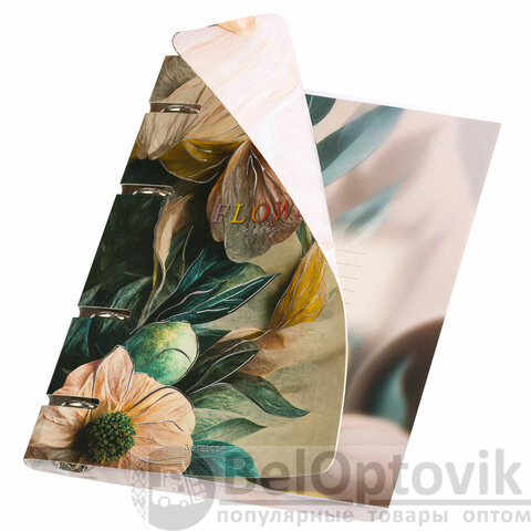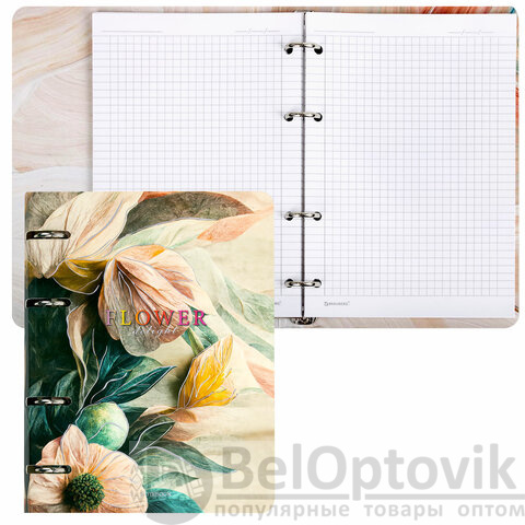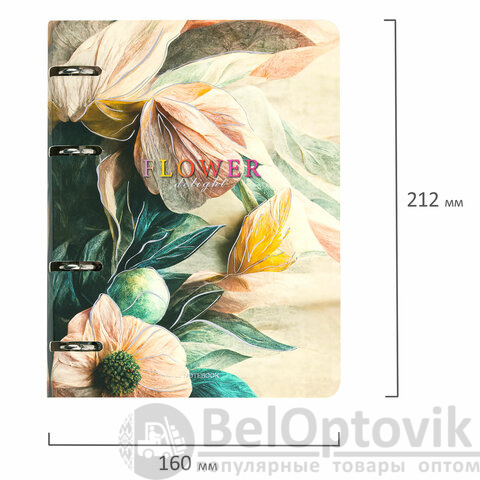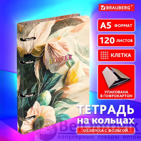 Тетрадь на кольцах А5 160х212 мм, 120 листов, картон, фольга, клетка, BRAUBERG, "Delicate flowers", 404737