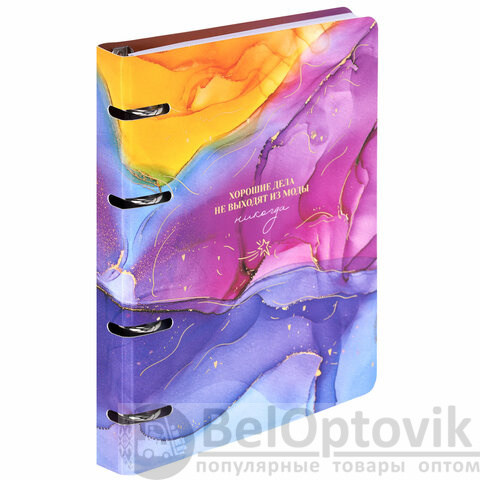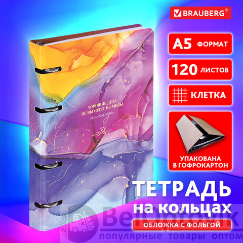 Тетрадь на кольцах А5 160х212 мм, 120 листов, картон, фольга, клетка, BRAUBERG, "Liquid art", 404738