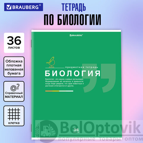 Тетрадь предметная "ЗНАНИЯ" 36 л., обложка мелованная бумага, БИОЛОГИЯ, клетка, подсказ, BRAUBERG, 404822