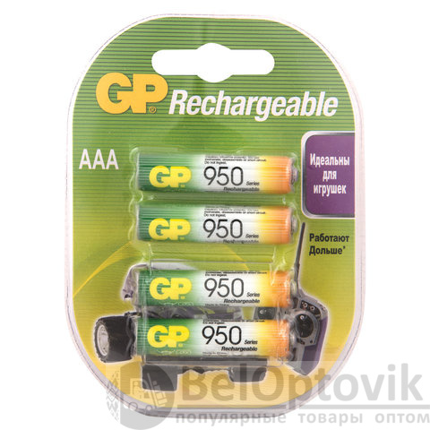 Батарейки аккумуляторные Ni-Mh мизинчиковые КОМПЛЕКТ 4 шт., AAA (HR03) 950 mAh, GP, 95AAAHC-2DECRC4