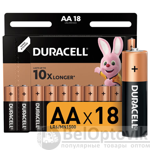 Батарейки КОМПЛЕКТ 18 шт., DURACELL Basic ОРИГИНАЛ, AA (LR6, 15А), алкалиновые, пальчиковые