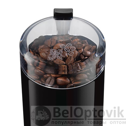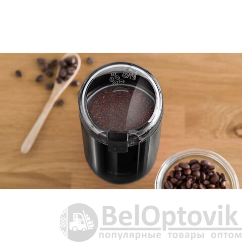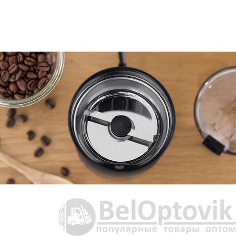 Электрическая кофемолка оснащена двигателем мощностью 180 Вт.