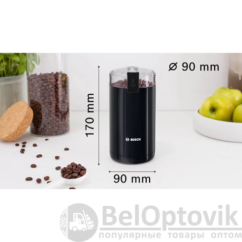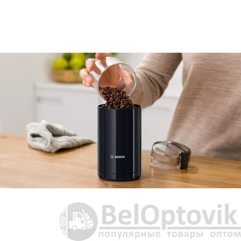 Кофемолка Bosch TSM6A013B/MKM6003 оснащена функцией автоматического отключения при открытии крышки для безопасной эксплуатации.
