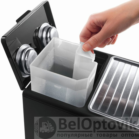 Кофеварка легко разбирается и моется благодаря съемному поддону и отсеку для капель. А комбинированная система управления (электронная и механическая) невероятно удобна в использовании.