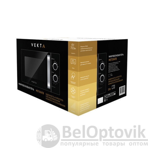 Микроволновая печь VEKTA MS720ATB, объем 20 л, мощность 700 Вт, механическое управление, таймер, черная