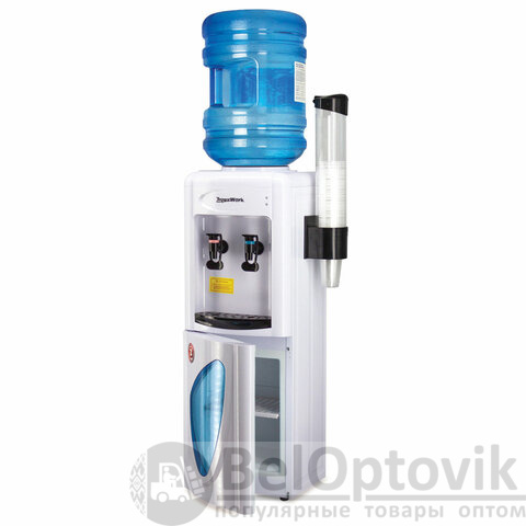 Кулер рассчитан на 20 пользователей, что делает его отличным выбором для средних коллективов. Встроенный шкафчик объемом 10 литров позволяет удобно хранить пластиковые стаканчики или другие принадлежности, а крепление стаканодержателя винтами или магнитом добавляет надежности и удобства. Элегантный белый корпус из пластика и стали не только выглядит стильно, но и обеспечивает долговечность.