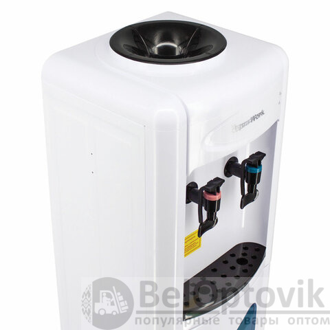 Два нажимных крана, активируемых кружкой, обеспечивают простоту и гигиеничность использования, а верхняя загрузка бутыли упрощает обслуживание.