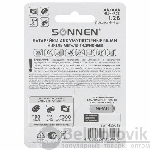 Аккумуляторы SONNEN AA 2700 мА·ч и AAA 1000 мА·ч относятся к никель-металлогидридным аккумуляторам. Они могут многократно перезаряжаться и выдерживают около 1000 циклов перезарядки. Аккумуляторы прослужат в течение длительного времени.