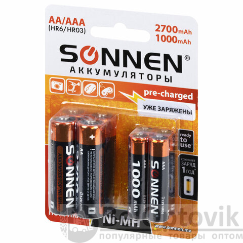 Аккумуляторы SONNEN AA 2700 мА·ч и AAА 1000 мА·ч являются универсальным решением. Элементы питания подойдут для применения в различной технике. Они уже заряжены и готовы к работе.