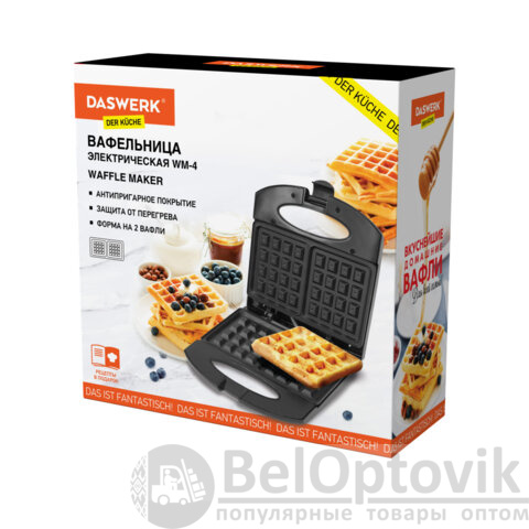 Электровафельница антипригарная для венских и бельгийских вафель, 2 вафли, 750 Вт, DASWERK, WM-4, 455651
