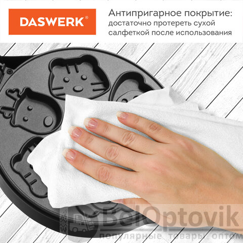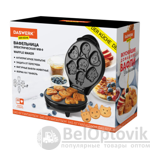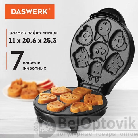 Электровафельница антипригарная для вафель в форме животных, 7 вафель, 700 Вт, DASWERK, WM-9, 455660