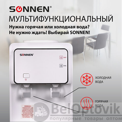 Напольный кулер SONNEN FSE-02i окажется незаменимым в офисе, дома, в школе, загородном доме благодаря простоте и удобству использования.