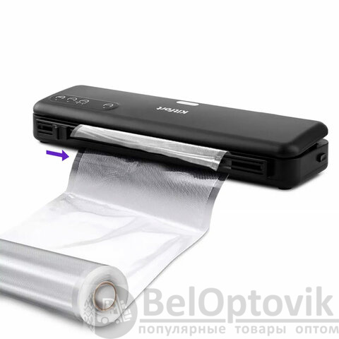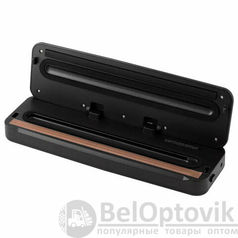 Прибор прост в использовании: достаточно поместить край пакета под крышку, и устройство автоматически откачает воздух и запаяет пакет.