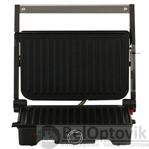 Электрогриль оснащён термостатом для поддержания постоянной температуры панелей и индикаторами, показывающими наличие питания, а также включение и отключение нагрева. Когда гриль разогреется до установленной температуры, на передней панели загорится зелёный индикатор.