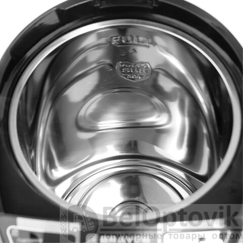 Корпус и внутренняя колба термопота выполнены из высококачественной нержавеющей стали, что обеспечивает долговечность и надёжность. Устройство оснащено LCD-дисплеем, на котором отображается текущая температура воды, что позволяет легко контролировать процесс нагрева.