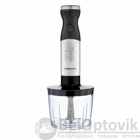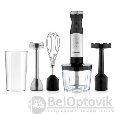 Блендер погружной BRAYER BR1244, 800 Вт, 8 скоростей, 4 насадки, стакан, черный