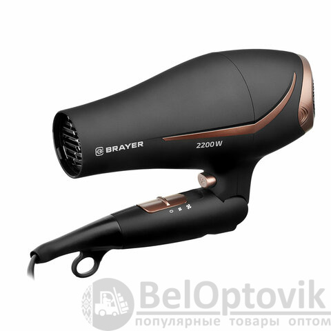 Фен BRAYER BR3000BN, 2200 Вт, 2 скорости, 3 температурных режима, складная ручка, черный