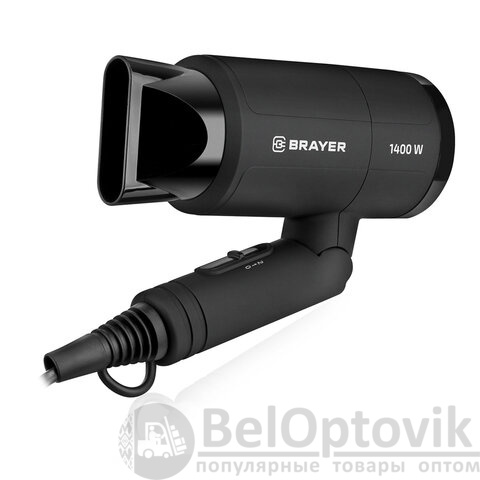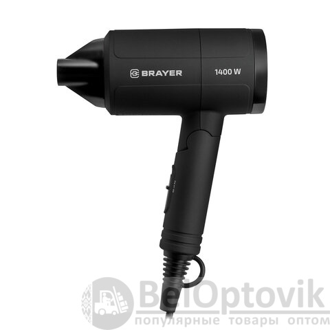 Фен BRAYER BR3040, 1400 Вт, 2 скорости, 1 температурный режим, складная ручка, черный