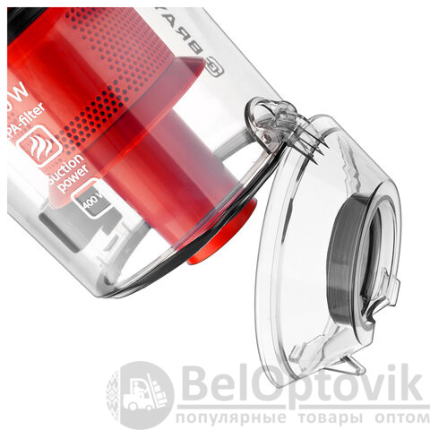 Пылесос BRAYER BR4201 оснащен циклонным фильтром с максимальной мощностью всасывания 400 Вт. Он эффективно устраняет мелкий мусор и пыль, а также справляется с шерстью животных.