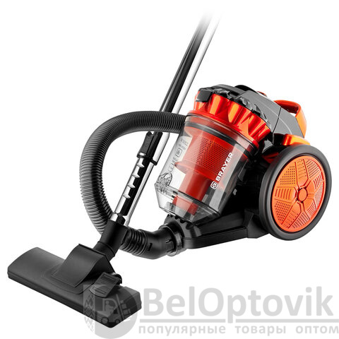 Пылесос BRAYER BR4201 с контейнером "циклон", 2200 Вт, мощность всасывания 400 Вт, черный/оранжевый
