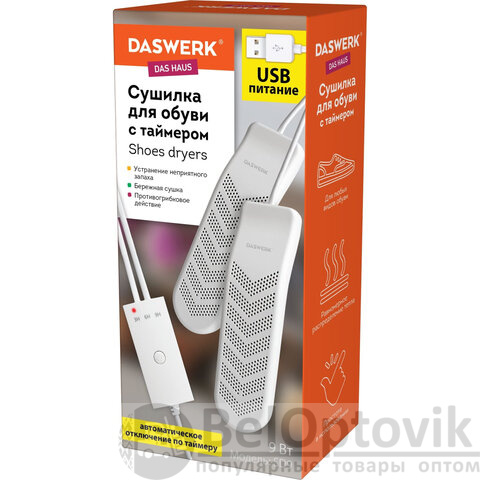 Сушилка для обуви электрическая с таймером, USB-разъём, сушка для обуви, 9 Вт, DASWERK, SD9, 456202