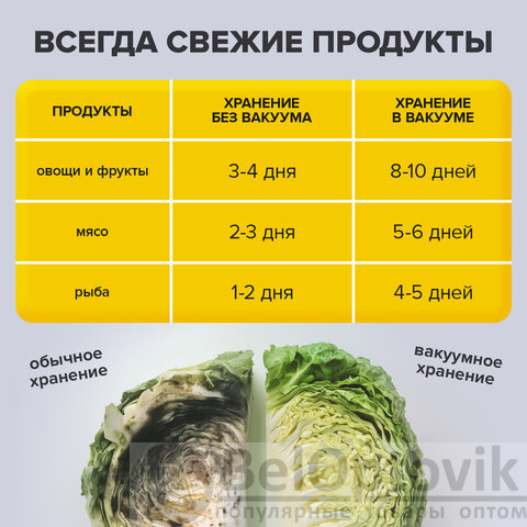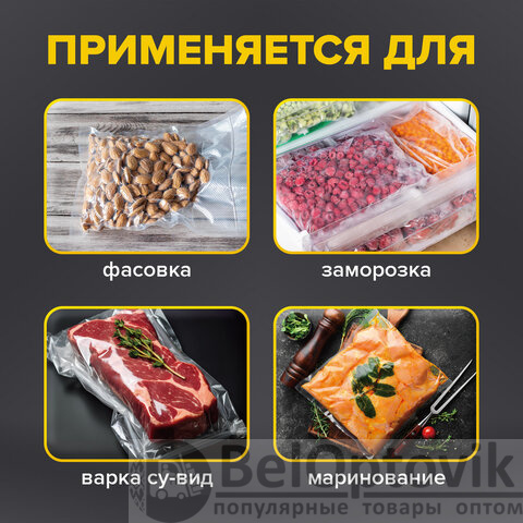 Вакуумный пакет идеально защищает продукты от внешних воздействий, таких как окисление воздухом, влага, пыль и микроорганизмы. Это позволяет сохранить вкус, аромат и внешний вид в 2-3 раза дольше, чем при обычном хранении. А также вакуумный пакет можно использовать в кулинарии, если вам нужно замариновать мясо и овощи или приготовить блюдо по технологии су-вид.