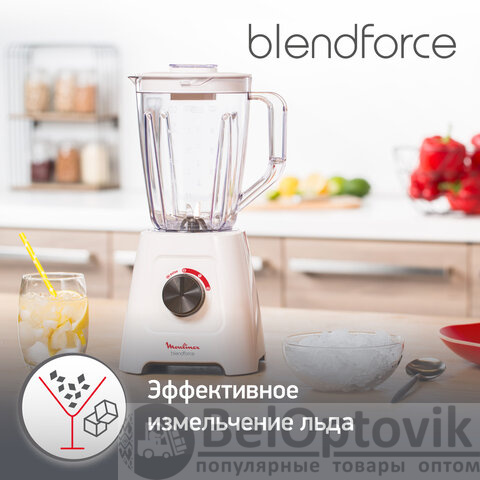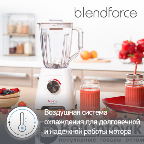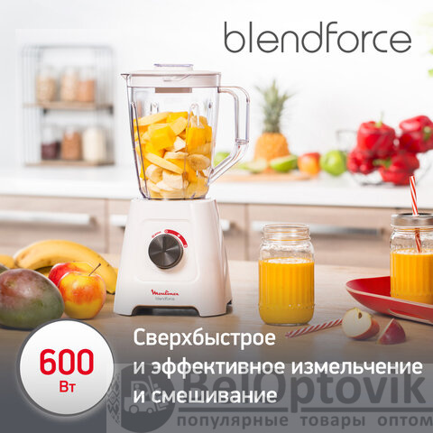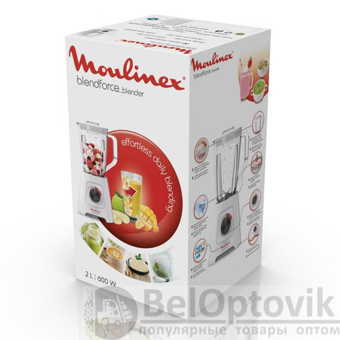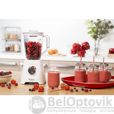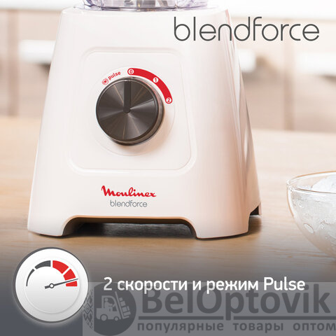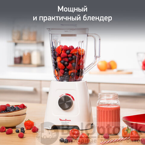 Блендер стационарный MOULINEX LM420110, 600 Вт, 2 скорости, чаша 2 л, пластик, белый, 7211003001