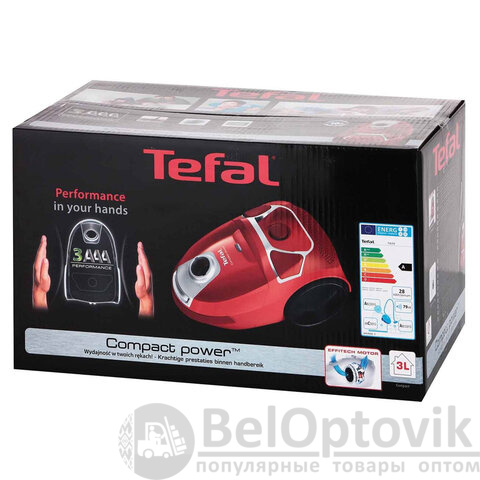 Пылесос TEFAL Compact Power TW3953EA, с пылесборником, потребляемая мощность 750 Вт, красный, 2211400166