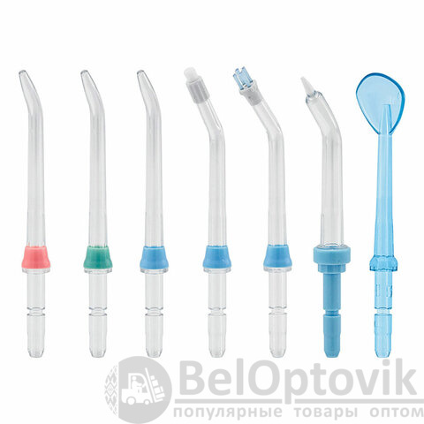 В комплектацию ирригатора входят 7 разных насадок, которые вращаются на 360°: