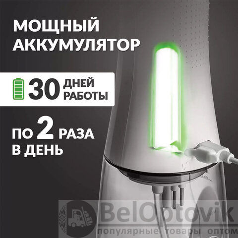 Портативный ирригатор подходит и для путешествий - полного заряда аккумулятора хватает до 30 дней, в комплекте удобный чехол для хранения.