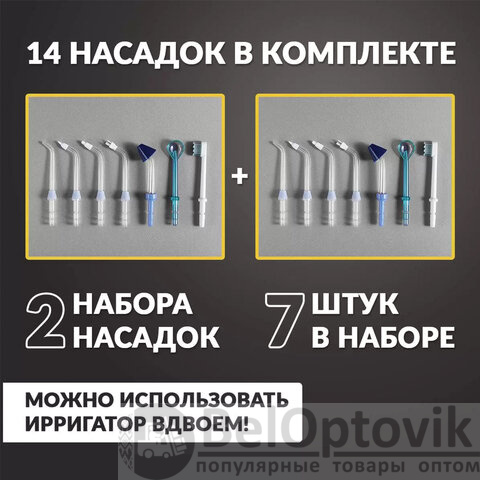 2 набора насадок в комплектации к ирригатору для полости рта позволят каждому члену семьи выбрать подходящие насадки.