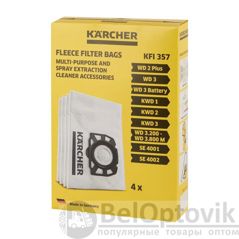 Фильтр-мешки из нетканого материала KFI 357 для хозяйственных пылесосов KARCHER серии WD 2 Plus, WD 3, WD 3 Battery и KWD 1 - KWD 3, а также моющих пылесосов SE 4001, SE 4002.