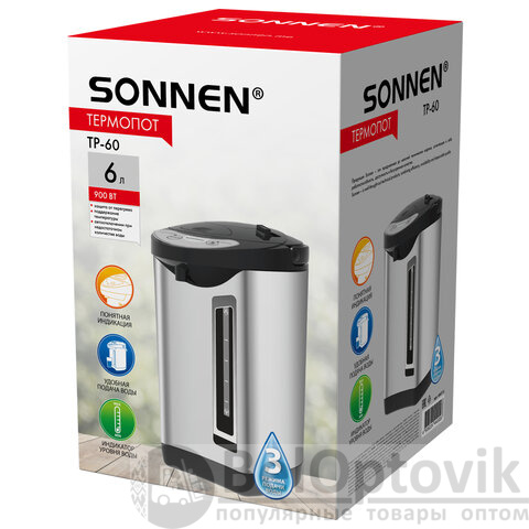 Сделайте свою жизнь ещё удобнее с термопотом SONNEN TP-60. Закажите его прямо сейчас и наслаждайтесь горячими напитками в любое время!