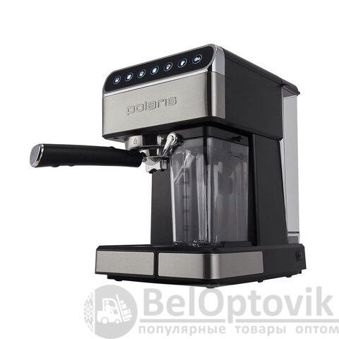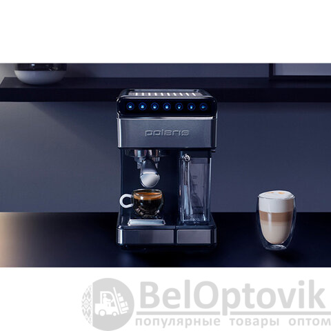 Наслаждайтесь крепким бодрящим эспрессо и молочными напитками на его основе каждый день, благодаря кофеварке рожкового типа от POLARIS мощностью 1400 Вт.