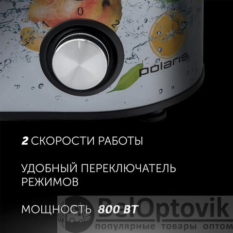 Соковыжималка POLARIS PEA 0829 Fruit Fusion, 800 Вт, стакан 0,35 л, емкость жмыха 1 л, пластик, сталь/черный, 15935