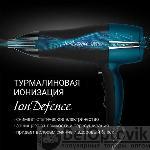 Фен POLARIS PHD 2245Ti, 2200 Вт, 2 скорости, 3 температурных режима, ионизация, морская волна, 07862