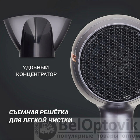 Фен имеет три температурных режима и два режима скорости воздушного потока, что позволяет подбирать оптимальный режим для разных типов волос. С мощностью 2200 Вт вы сможете быстро высушить даже самые длинные и густые волосы.