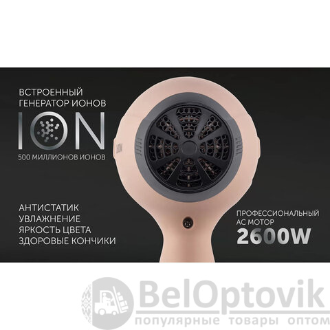 Фен POLARIS PHD 2600AСi Salon Hair, 2600 Вт, 2 скорости, 3 температурных режима, ионизация, розовый пепел, 64278, PHD 2600ACi