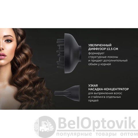 Диффузор формирует структурные локоны и/или придает дополнительный объем у корней.