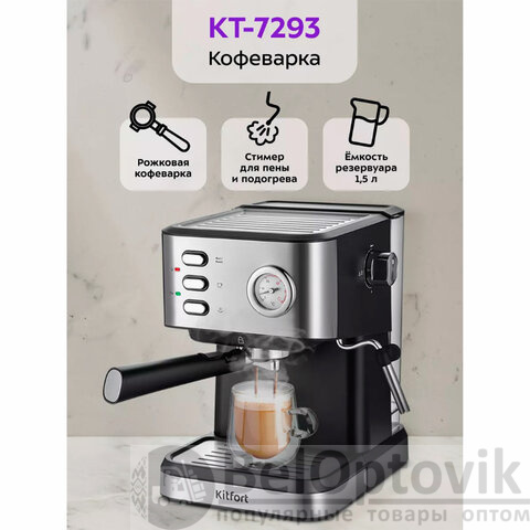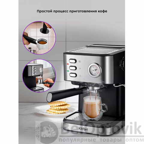 Приготовьте настоящий бариста-кофе дома с рожковой кофеваркой KITFORT KT-7523 – стильной, мощной и функциональной моделью, которая превратит вашу кухню в мини-кофейню!