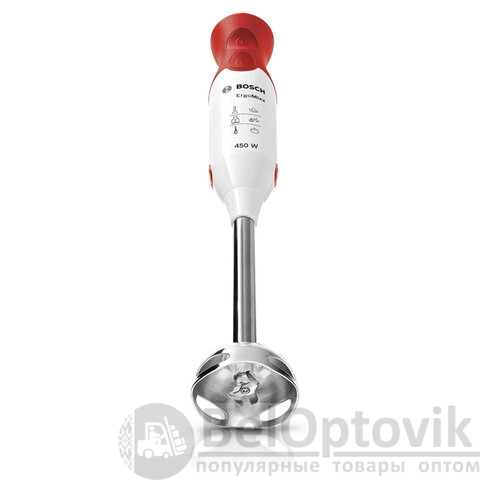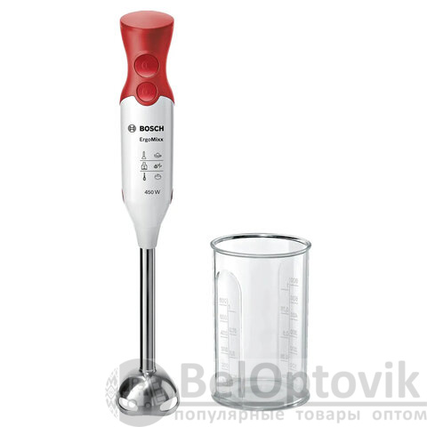 Блендер погружной BOSCH MSM64110, 450 Вт, 2 скорости, 1 насадка, стакан, белый/красный